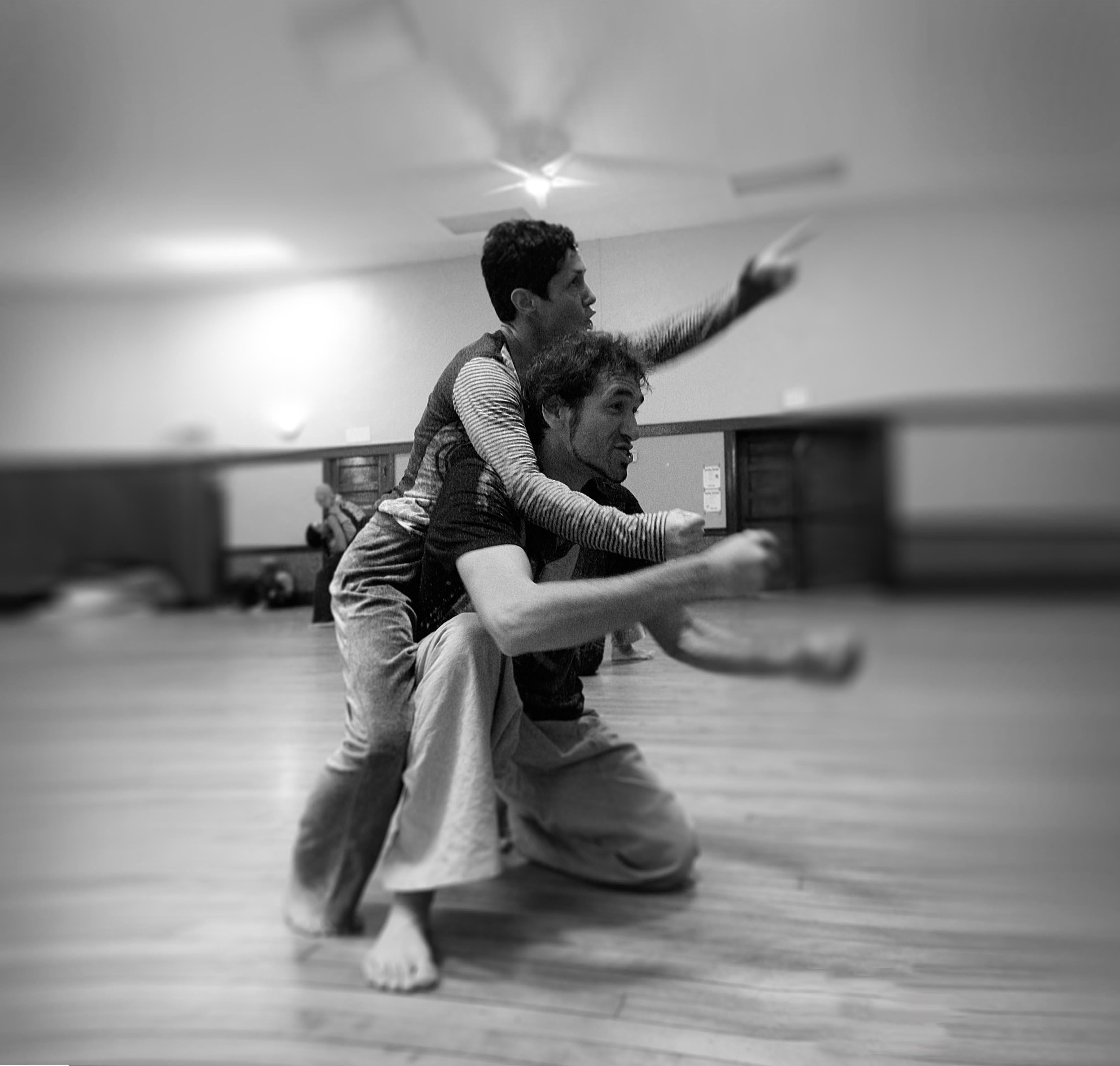 When we Blindfold ourselves and let our sight go we are able to develop and heighten our other senses. In Contact this is essential to training our bodies to expand beyond our patterns and open to a broader range of movement and sensation. Being blind in the dance is a whole new experience that helps to let go of our prejudgements, agendas and movement habits. By being disoriented in blindness we can reorient ourselves without all the judgments and stories that our minds create from engrained patterns and assuptions. By listening with all our other senses we can forge new pathways to deeper intimacy.
